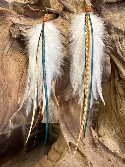 The Jadyn-8 inch Turquoise and Brown Feather Symbolic Boho Earrings