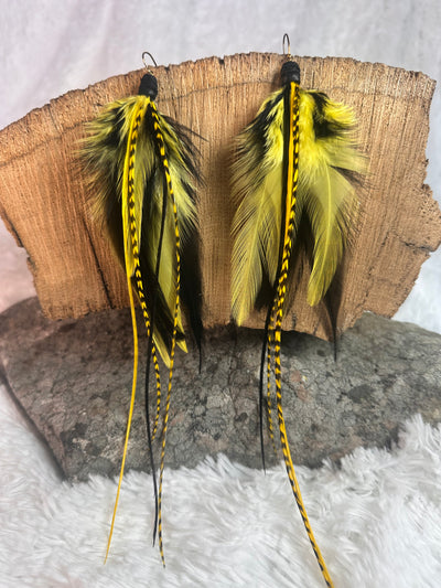 8 inch Beautiful Handmade Everyday Yellow and Black Feather Grizzly Earrings
