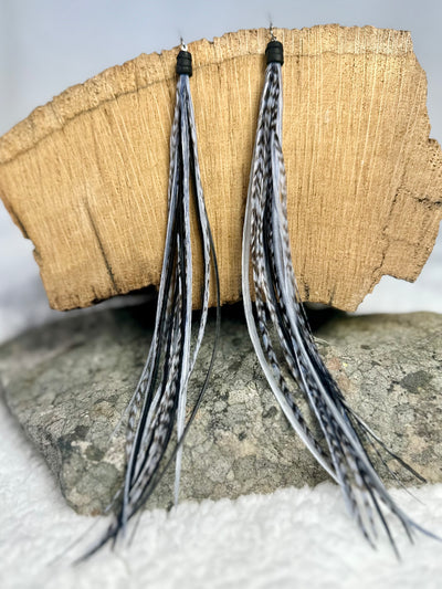 8 inch Beautiful Handmade Everyday Black and Gray Feather Grizzly Earrings
