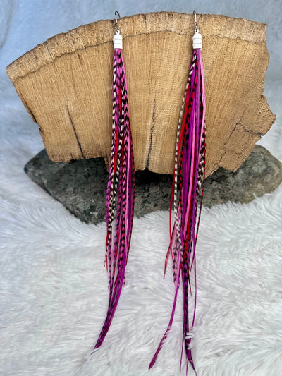 The Vicki – 8 inch Pink & Black Handmade Flowy Feather Earrings
