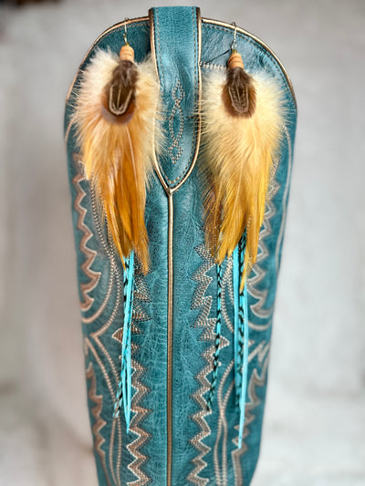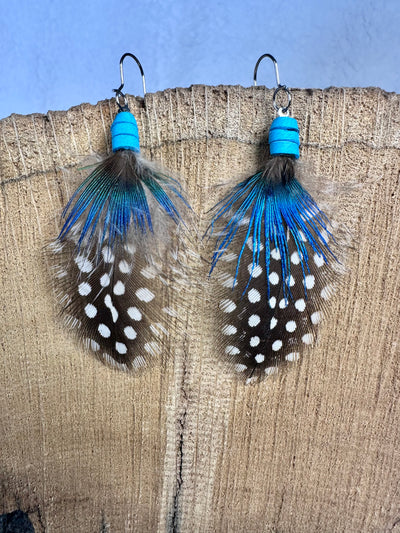 The Nicole – 8 inch Turquoise & Brown Handmade Long Feather Earrings